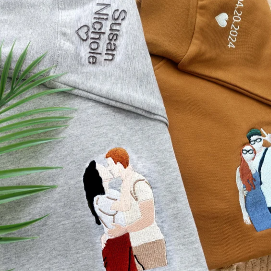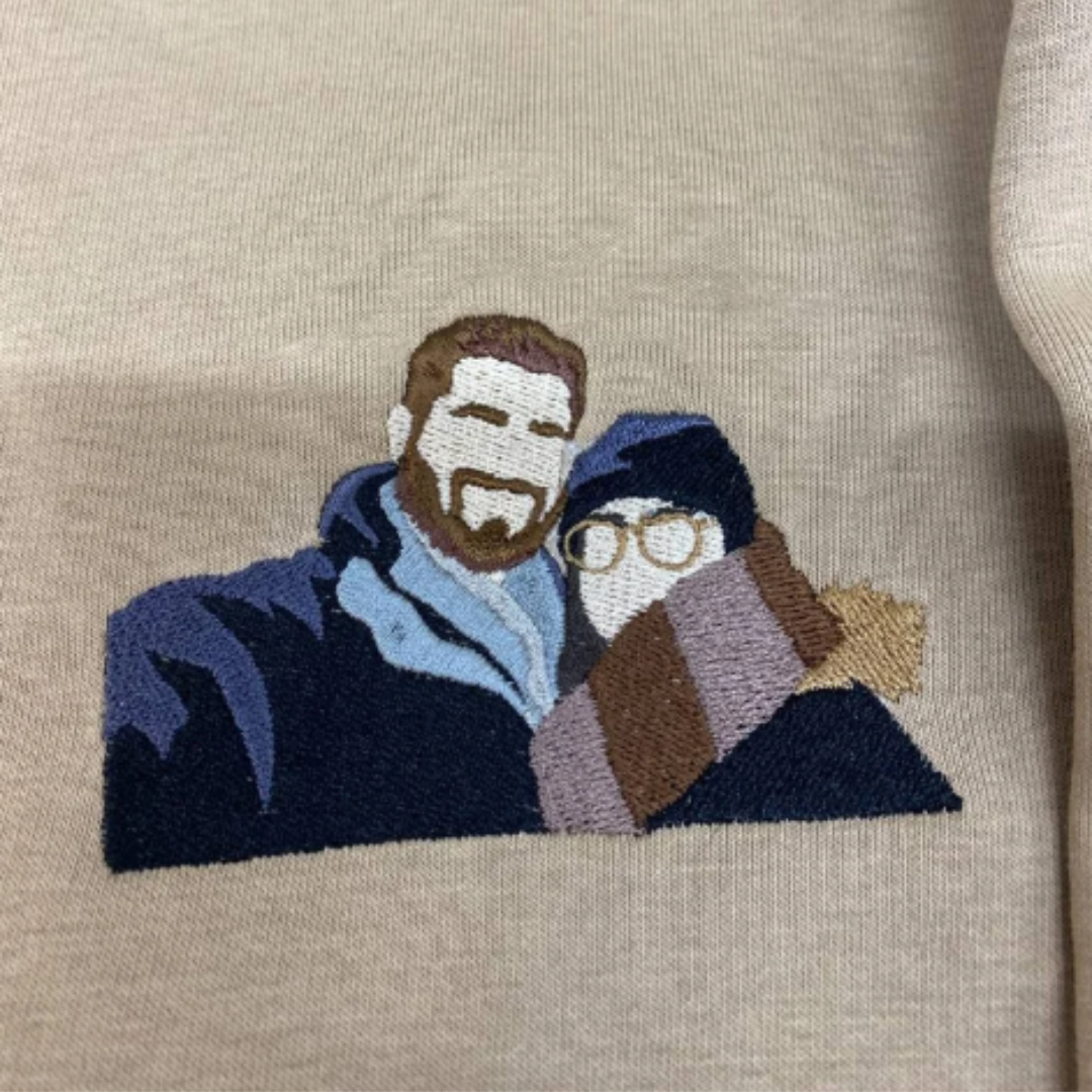 Ilustracija para po vaši fotografiji in napis, ki pove bistvo vajine zgodbe — brez odvečnih besed.